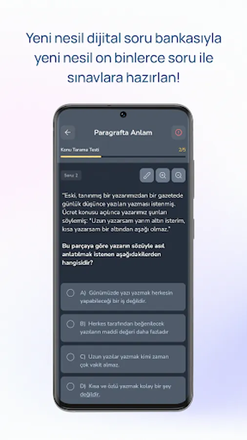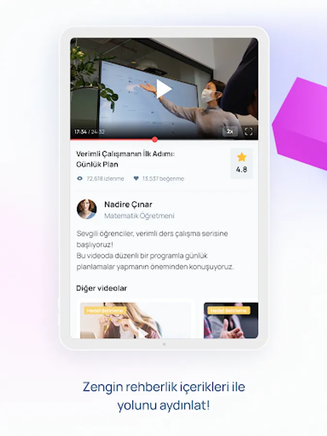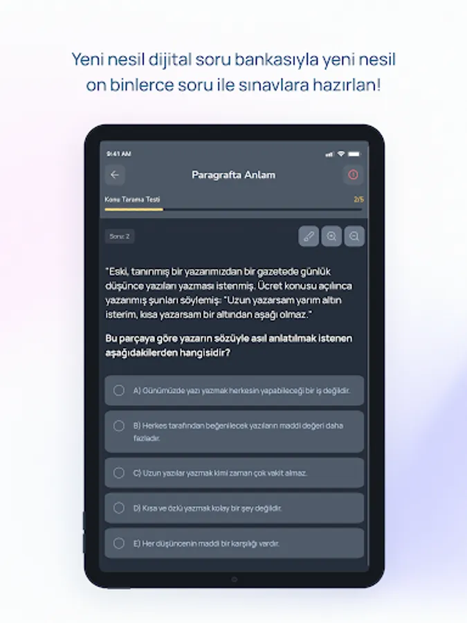 In our digital learning platform for all your needs in YKS, LGS, DGS, KPSS, ALES and English, including from the 4th to the 12th grade; You can get one-on-one private guidance support, connect to express private lessons where you can have one-on-one interviews, create a personalized study program, and access detailed analyzes of the questions and the predictions of the questions that may arise.