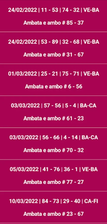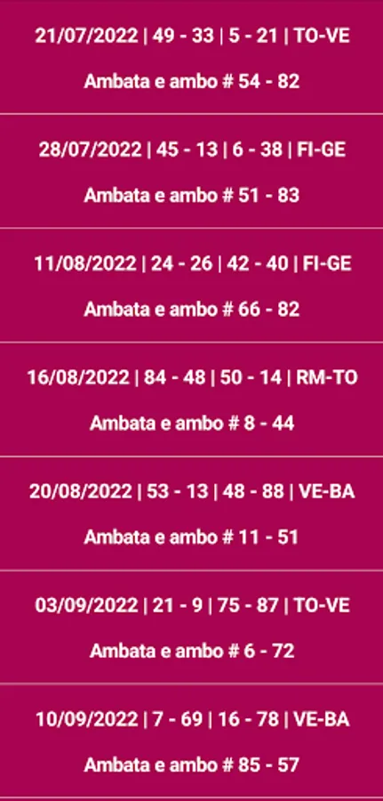 The program carries out the search starting from three months before the last draw contained in the database (the National Wheel is excluded). The predictions are to be played for a maximum of seven/eight draws.