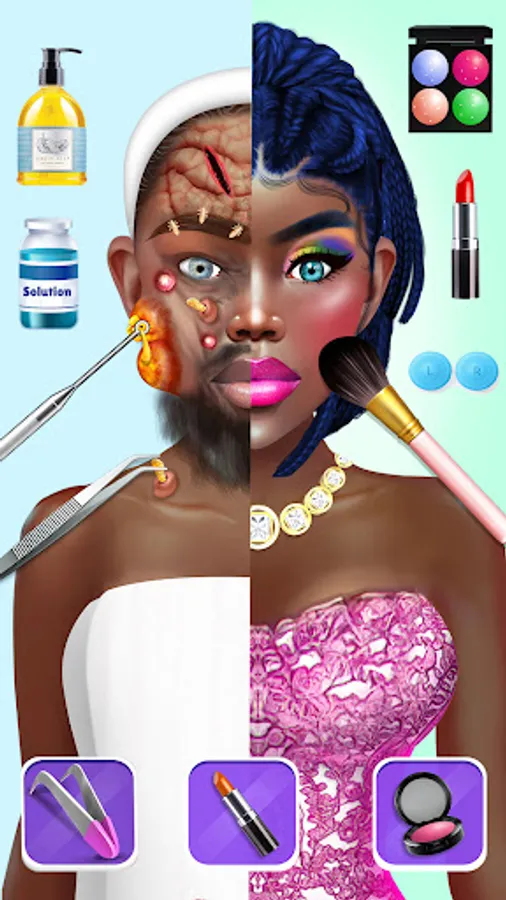 In this doctor game, you will be allowed to do model Makeup and get yourself ASMR satisfying feel to cure patient in hospital games like curing face wrinkles, remove eye dark circle, lip treatment, dark lips cure, pimple pop cleaning, face facial, rash remover, skincare and surgeries in this hospital simulator surgery game and doctor games. Title this simply like pimple remover skincare game, makeover game or makeup games, all will fit on nurse clinic this ASMR game.