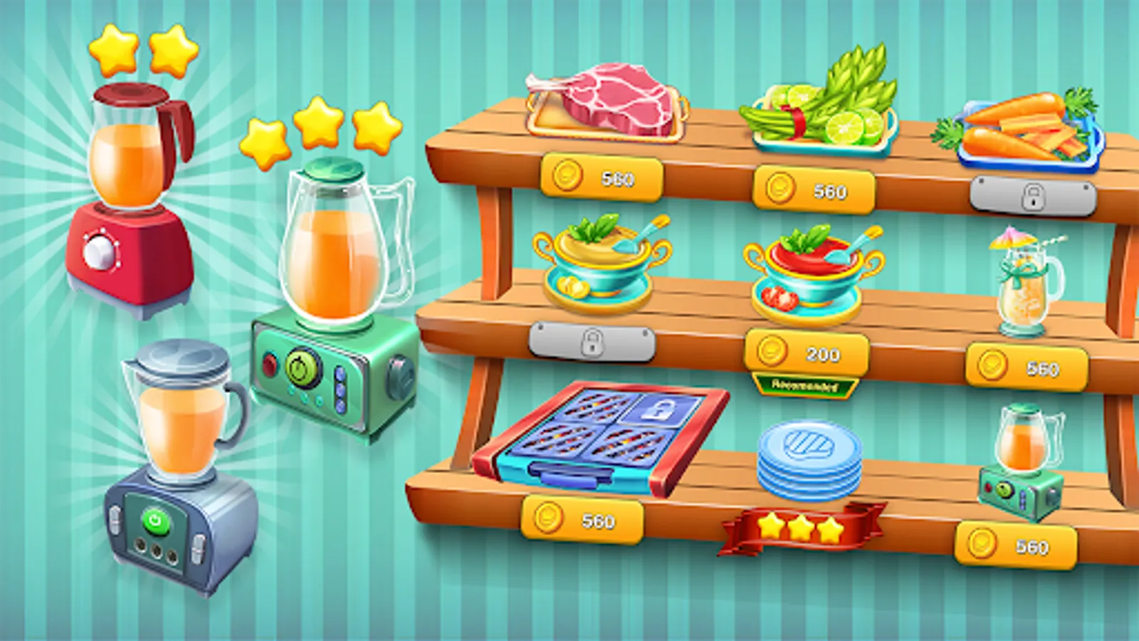 This not a cooking and merging game, but just tap to cook what you want, you will have hundreds of ingredients in the kitchen. In this kitchen game you have to cook food and serve to the costumers. Become the master chef in this new cook game and be a pro chef. Cook what you want to, French fries, burgers, steaks, pizza, baking, Maggie and hot dogs!
