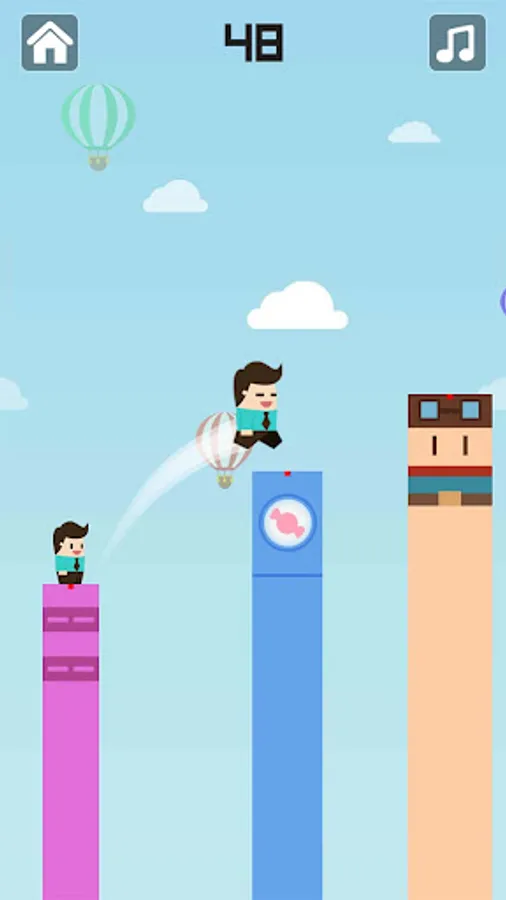 Tower Jumping: Tap longer to make your character leap up tall towers. Don't let them fall in this reflex brain teaser! Who can reach new heights in this ball rolling game?