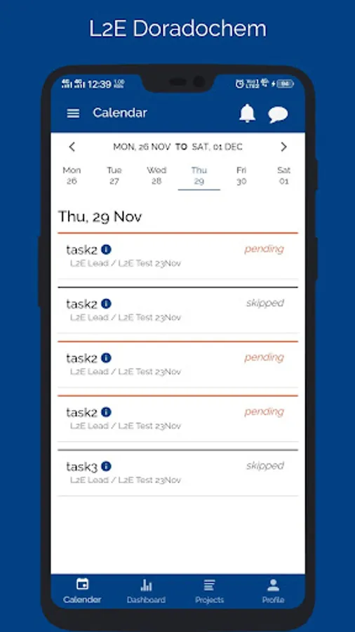 L2E Doradochem App can be used by employees for Dorado Chem Pvt Ltd and it’s division Associated Agencies to manage everyday tasks. Users can communicate with group members, review calendar and dashboard for upcoming tasks and update tasks currently in their name.