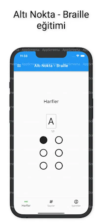 Six Dots (Braille) is a free application to learn Turkish letters.