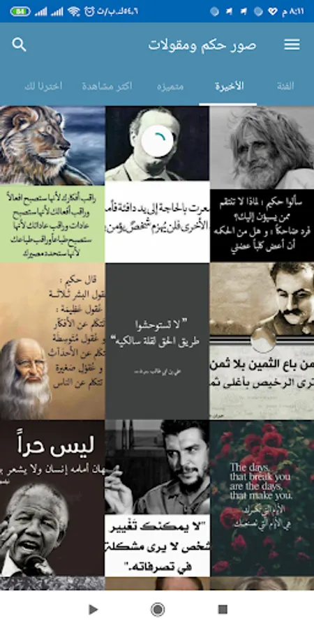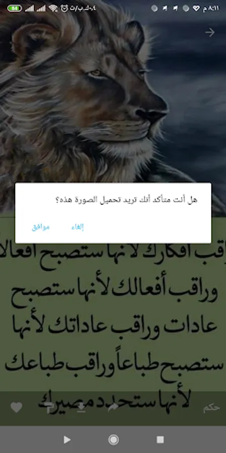 7- It works online, where it needs to connect to the Internet on the phone to search for backgrounds with pictures on which a judgment about life is written