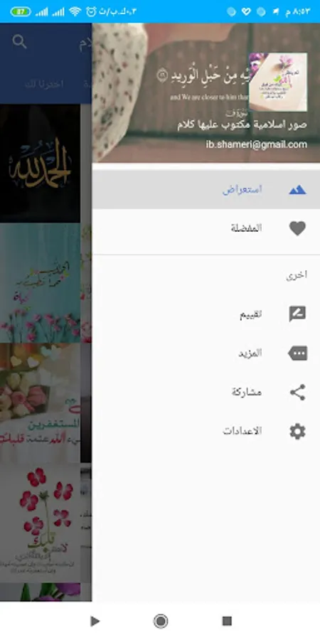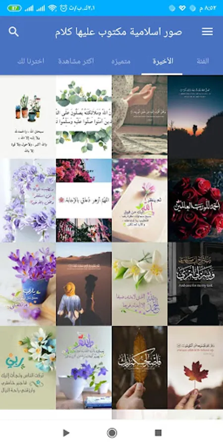 Religious images may differ in their classifications and content between images of supplications, images of Quranic verses, images of hadiths and other Islamic backgrounds and symbols, which, although there are many reasons for their participation, such as advice, guidance or urging to work with the laws of the Islamic religion in application of the orders of God Almighty to enjoin good and forbid vice or to show the tendency The religious nature that prevails on the instinct of Muslims of all nationalities and sects, but all of them are directed towards one goal and message represented in raising the word of religion.