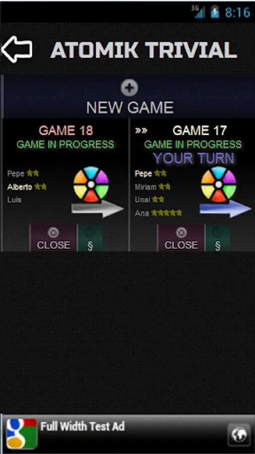 In Atomik Trivial, you can play multiple games simultaneously (maximum of 20).