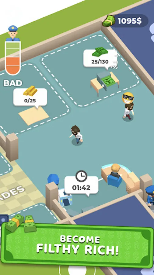 Play Bank Idle Arcade now and discover how it feels to make financial decisions and own crazy amounts of money. Money that comes easy when you're at the top!
