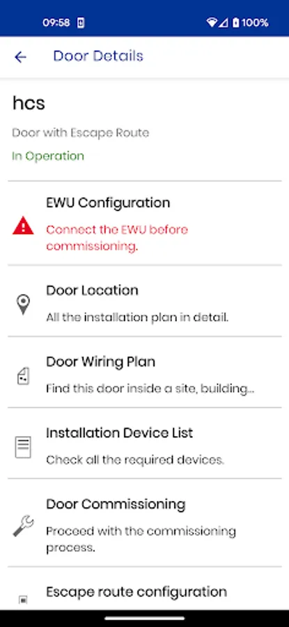 The EntriWorX Setup App is an easy to use tool to commission an EntriWorX door. The app receives the configuration data from the planning tool EntriWorX Planner as a working package. The user connects to the EntriWorX Unit trough Bluetooth and is guided trough the commissioning process.