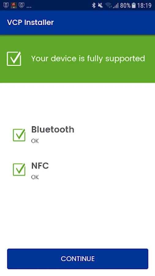To ensure that the smartphone is suitable for the use of VCP Installer, the app checks the corresponding interfaces.