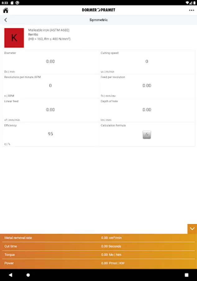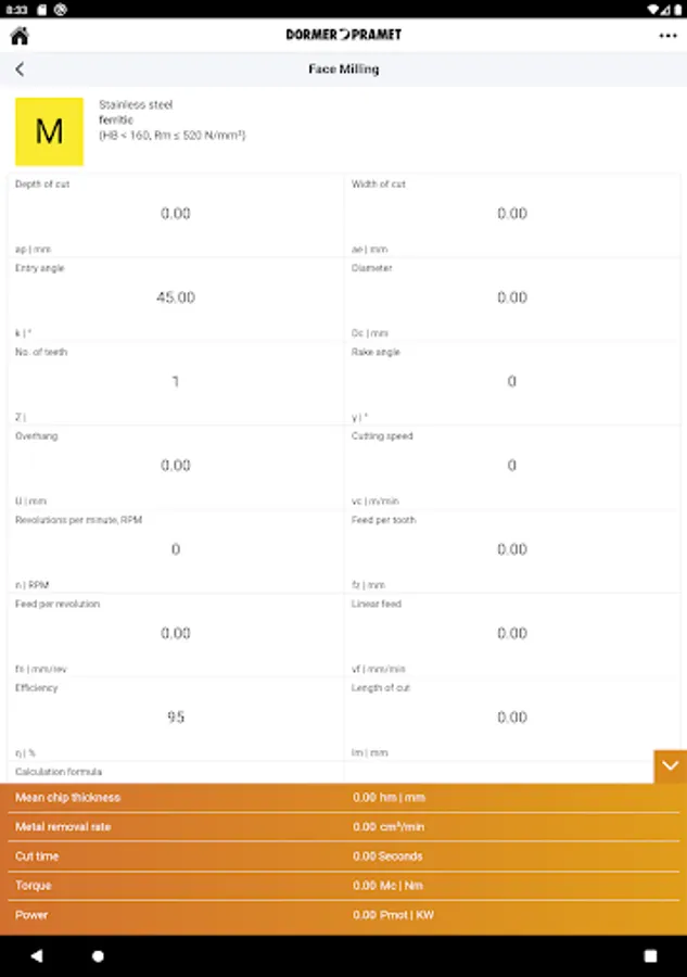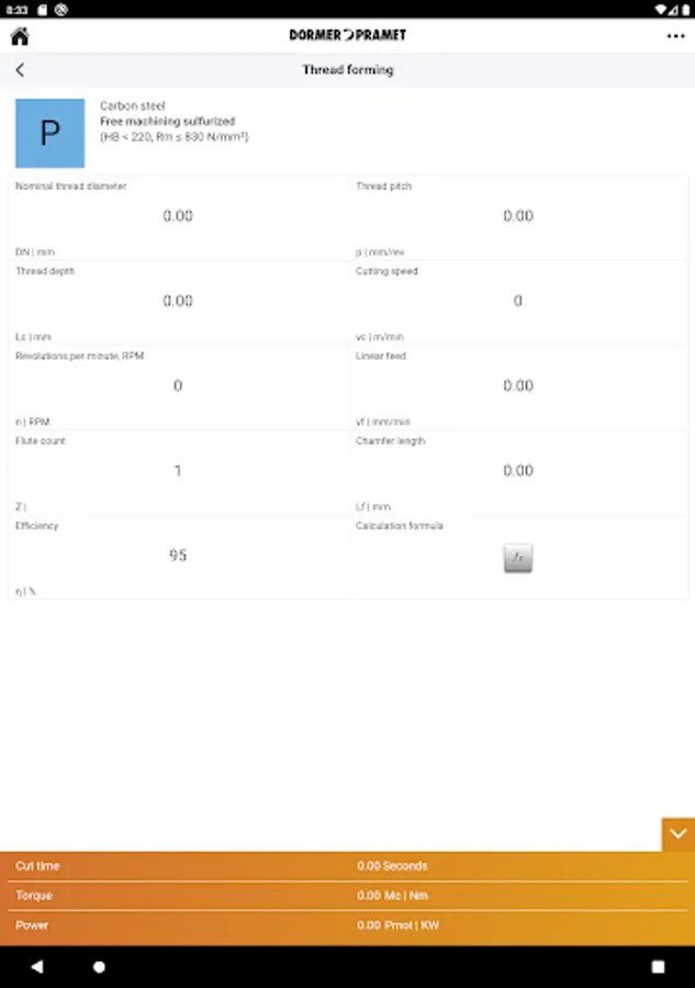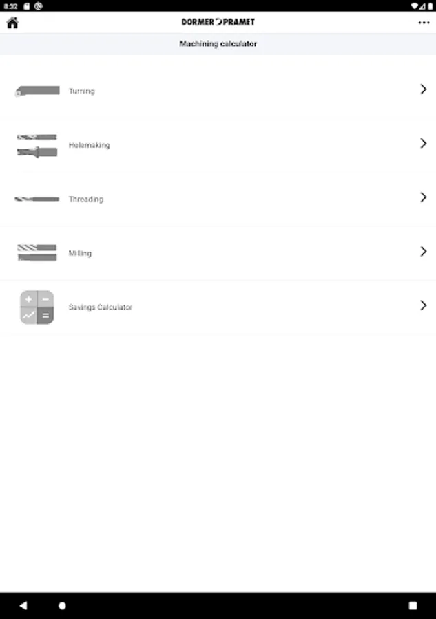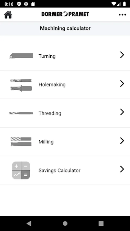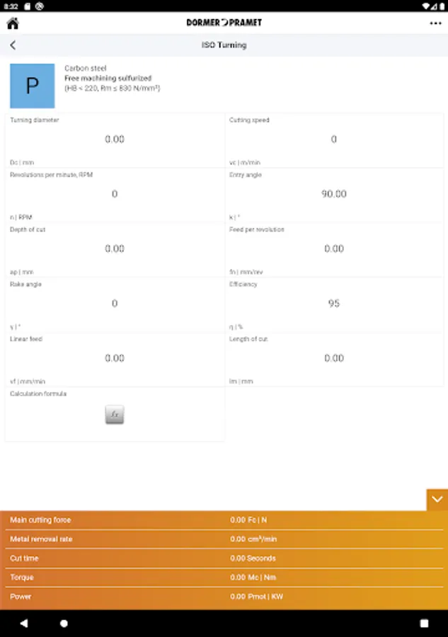 Dormer Pramet’s machining calculator app provides engineers and CNC operators the relevant cutting data for various turning, drilling, threading and milling applications. The app has an easy-to-use interface for providing machining time, torque, power, cutting effort, removal rate and chip thickness. It includes the WMG (Work Material Group) technical data format.