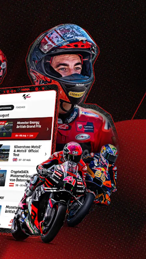 Stay connected to the exhilarating world of MotoGP™ anytime, anywhere with the Official App! Enjoy full LIVE coverage of every Grand Prix, Live Timing for each session, and access to the latest news, results, and Championship standings. Don't miss a beat of the excitement—download the Official App now!