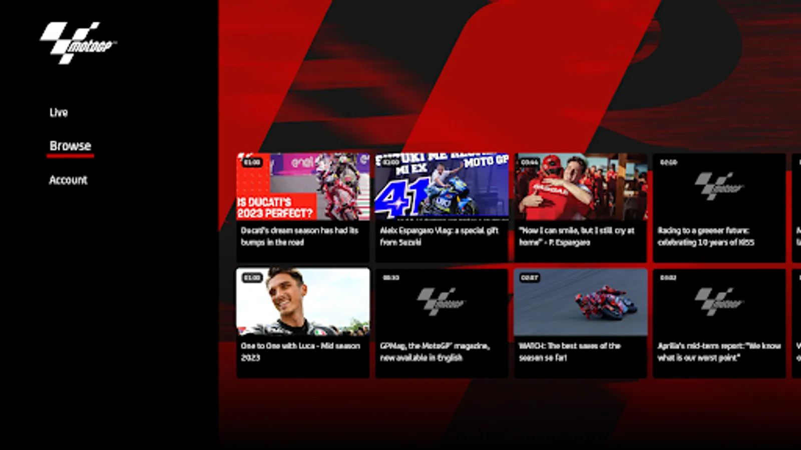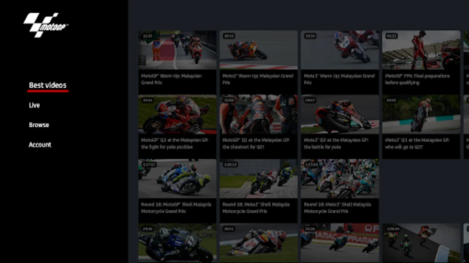 Enjoy your favourite sport with more than 45,000 videos including full GP races, interviews, highlights, technical features, summaries, and much more.