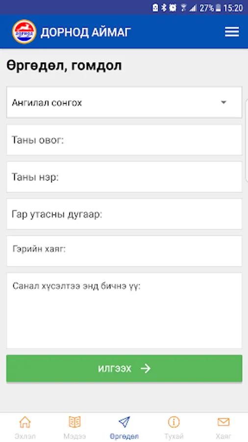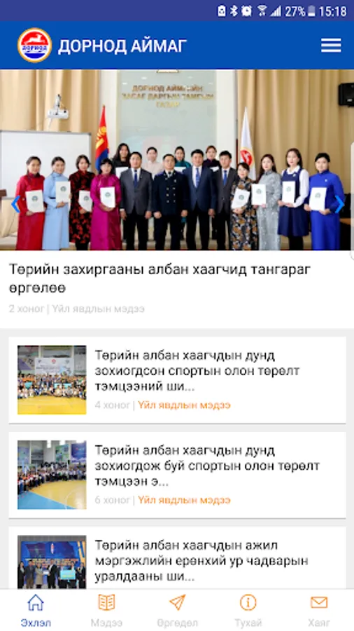 The official mobile application of the Governor of Eastern Province. By installing this application on your mobile phone, you can receive information about the Governor's Office of the Eastern Province, Sums, Agencies, and Departments without delay, as well as send applications, complaints and suggestions to the public relations office of the Governor's Office.