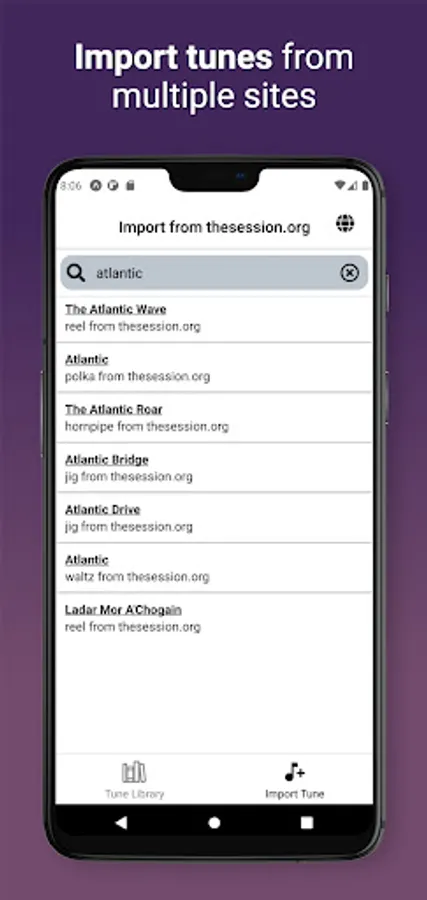 Currently five sites are available for import, with a strong focus on Irish and North American Old Time melodies.