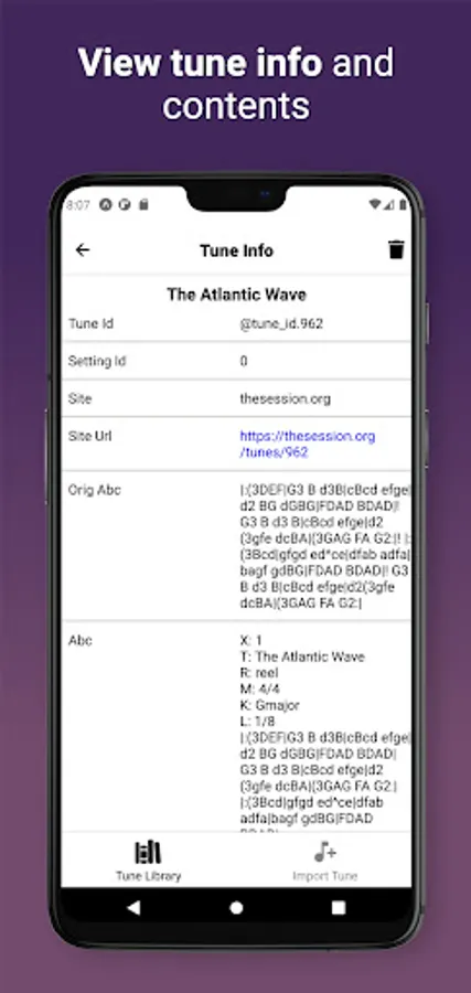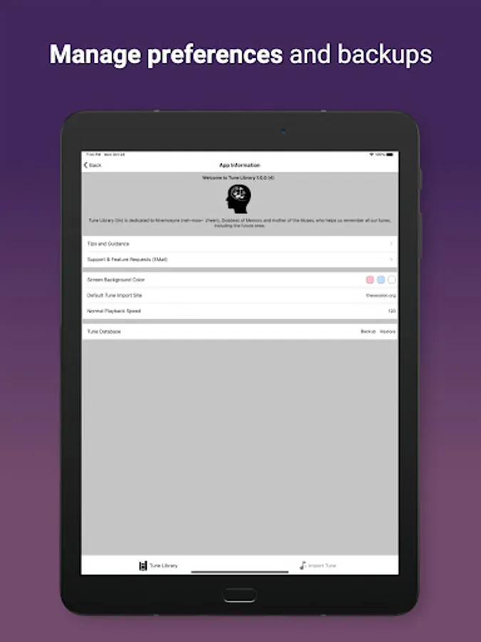 Tune Library helps you find and remember your tunes for a practice, jam or session. Import your repertoire from a range of supported tune sites, then quickly locate tunes as needed by rhythm, mode, key, name, etc.