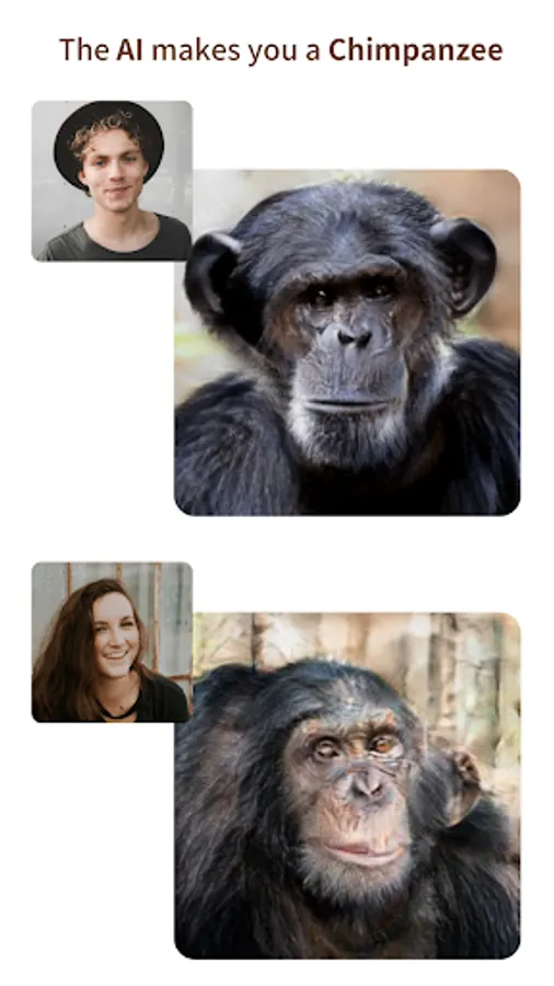 ChimpanMee is a simple app just for turning someone's face into a chimpanzee, but it generates as many different chimps as the number of people with the power of AI.