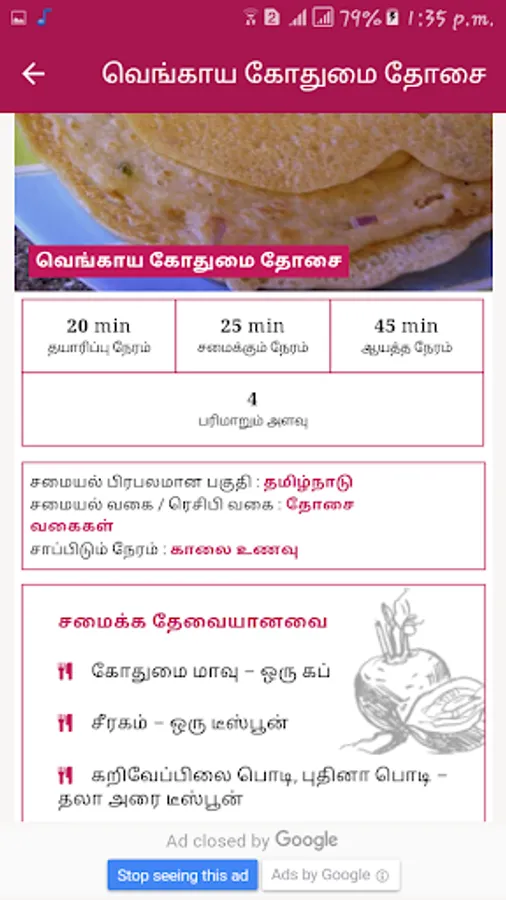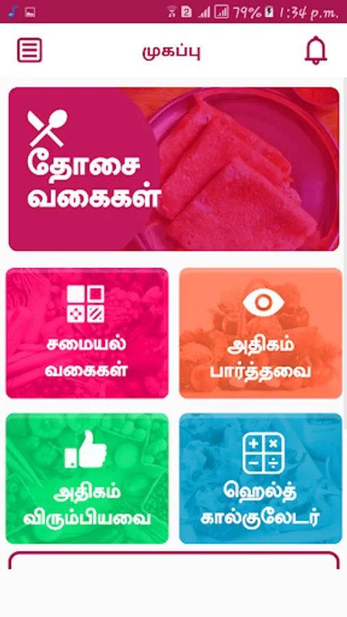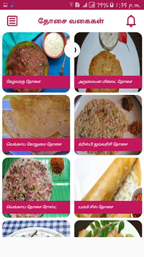 Some of the traditional foods are always in demanding state that is Dosa , most of the people prefer Dosa in hotels because the taste is very crispy . So we can enjoy every bit . In our Dosa Recipes Tamil App we provide many varieties which are very different and delicious to taste.