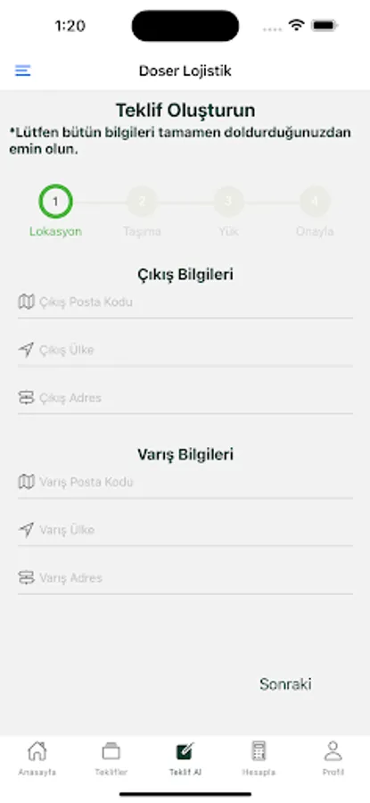 Our logistics company, which started to serve in Istanbul since 2018, has revealed a successful sectoral chart in the logistics sector with domestic and international (land, sea, air and railway) transportation services in a short time. We provide 24/7 service to all continents with our wide vehicle and agency network in every part of the world. Our application is an application created specifically for receiving offers on our website.