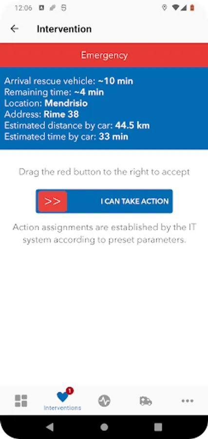 In cases of cardiac arrest, the control panel sends Ticino Soccorso 144, via "push" , a message indicating the location of the intervention and the estimated time of arrival of relief professionals. In the event that the FR is in the vicinity of the patient and is able to confirm its willingness to intervene via the App and its intervention is managed and recorded directly from Ticino Cuore 144.