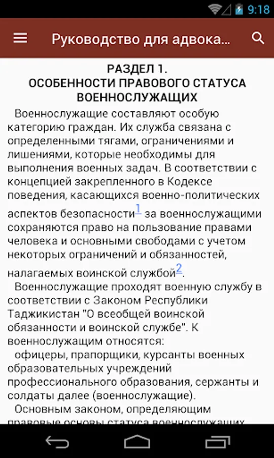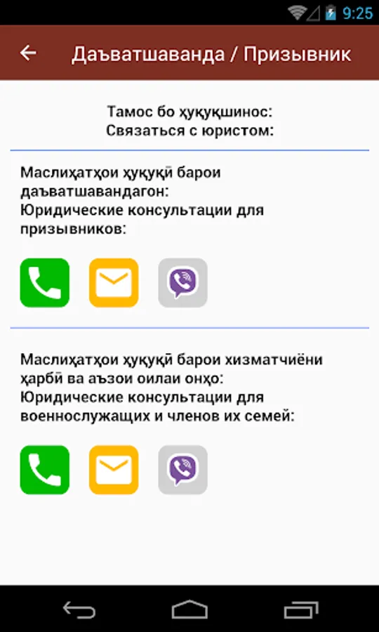 The DaVatshavanda / Conscript application is a compilation that consists of 18 separate books and 24 legislative documents on the rights of conscripts and military personnel. Also in the application there is an opportunity to view the news of our organization dedicated to human rights. The application is developed in the form of a universal manual that can be used by persons of conscription age and their parents, persons passing the initial military registration, teachers of the subject "Initial military training", doctors of draft commissions and anyone wishing to improve their knowledge in this area.