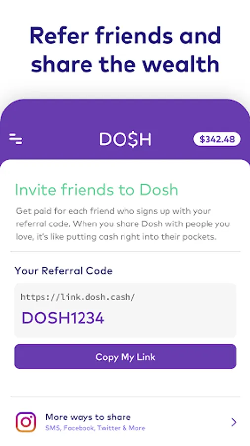 - Refer friends & family - Get paid for each friend who signs up with your referral code. When you share Dosh with people you love, it’s like putting cash right into their pockets.