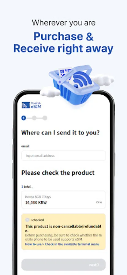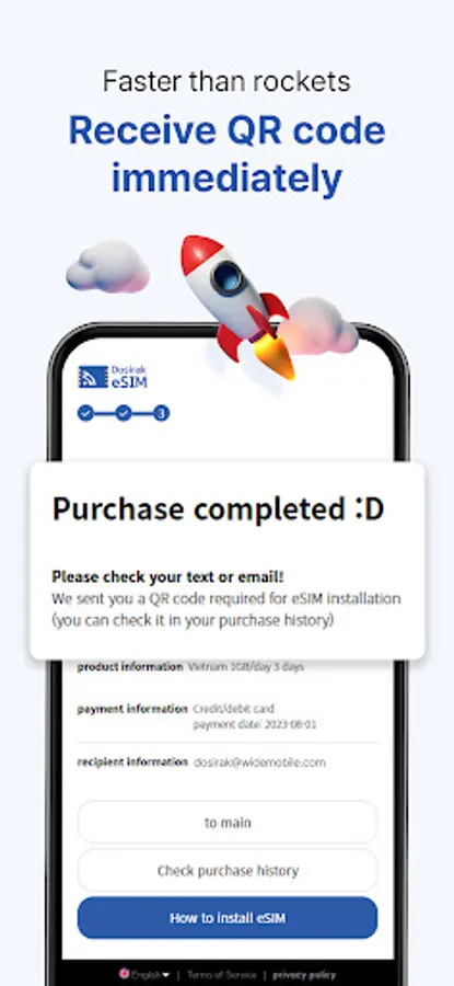 You will receive the QR code for the eSIM you ordered at any time 24/7.