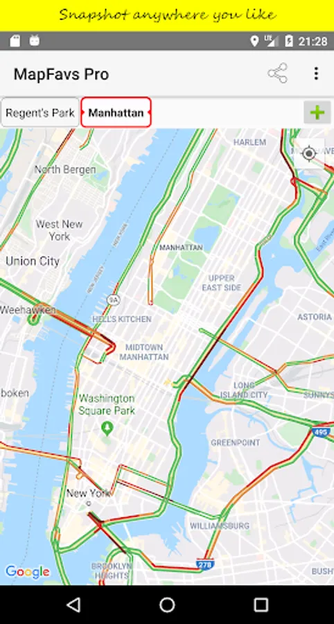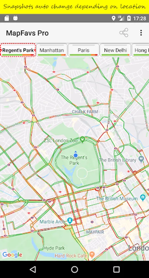 Primarily created to display traffic hotspots when driving around but so much more. The app also summarises traffic levels on each snapshot and shows these levels on the main map and on the snapshot button. Additionally, MapFavs has support for what3words addresses on markers and on the Latitude/Longitude screen.