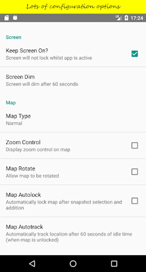 By default the screen never locks whilst the app is active however it will dim after a number of seconds (user selectable), a tap on the screen will un-dim. Additionally the screen will automatically undim if traffic levels change significantly or if the snapshot changes of course