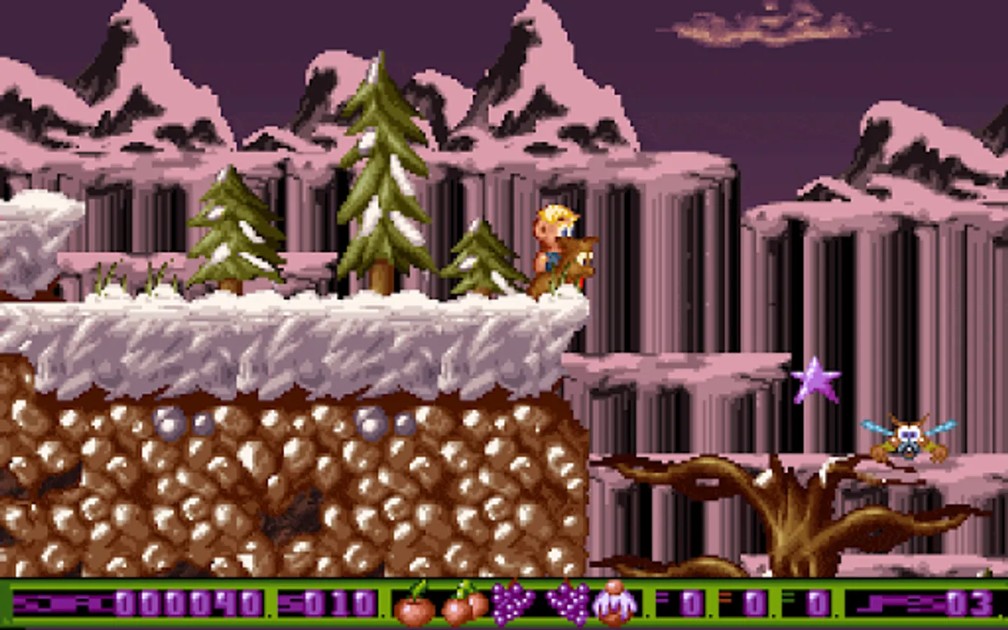 The platforms are often on different levels, providing multiple routes through the game. Most hazards in the game can be shot, but others can be avoided by jumping. A number of bonus weapons and other enhancements are on offer.