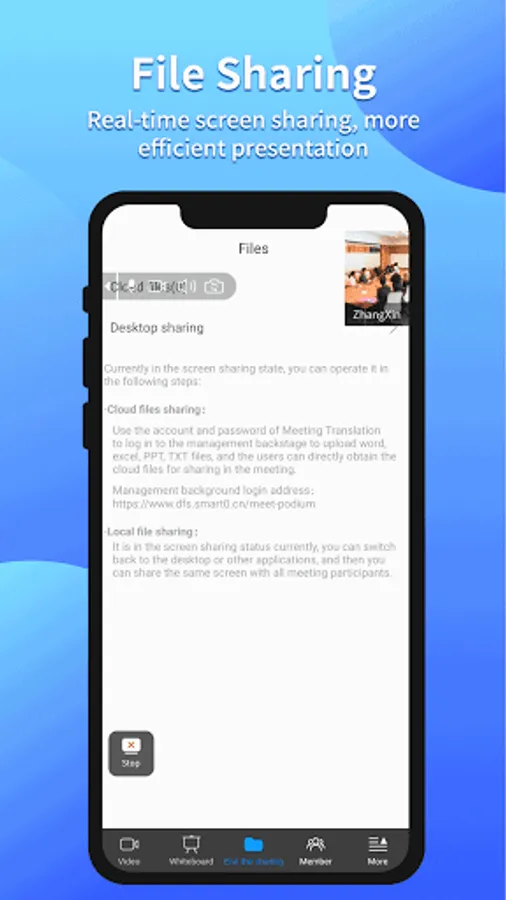 Sharing files supports sharing ppt, text, pictures and other files on the same screen in different places.
