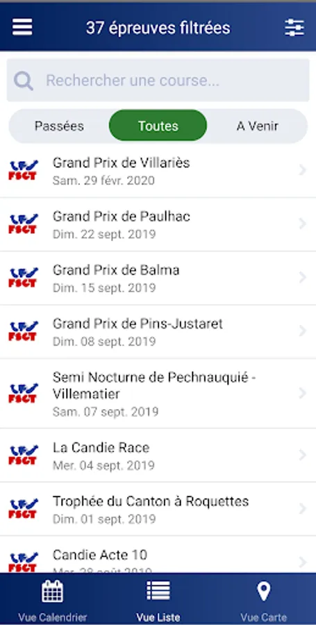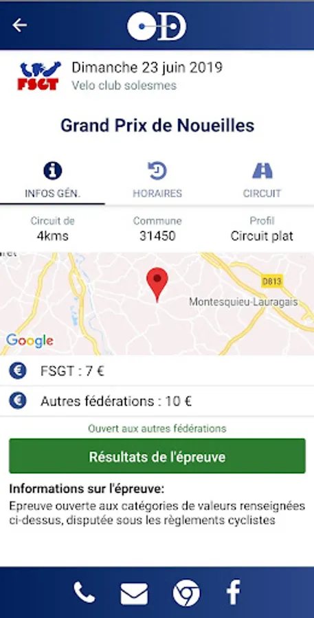 Proposes the results of the events as well as the list of runners (requires that the organizer of the event has previously used the Open Dossard commitment tool)