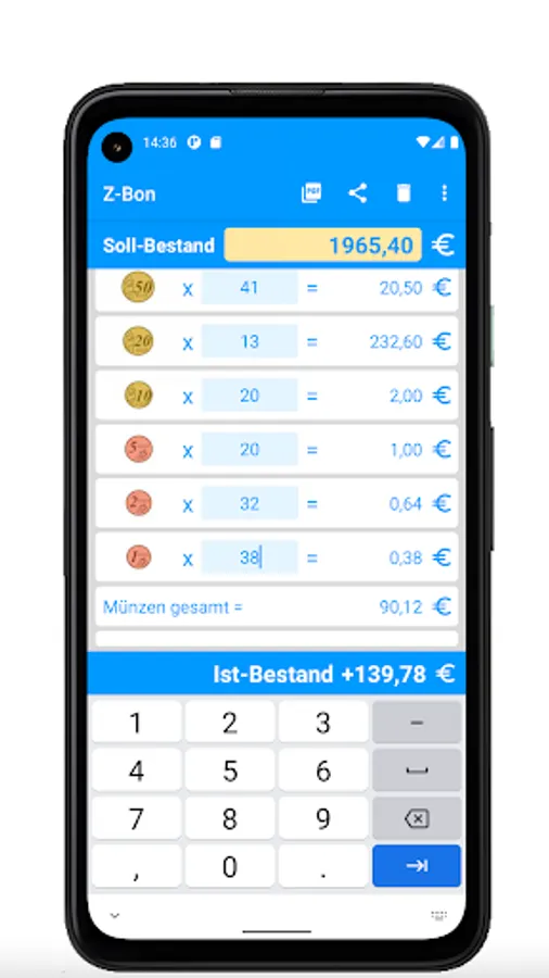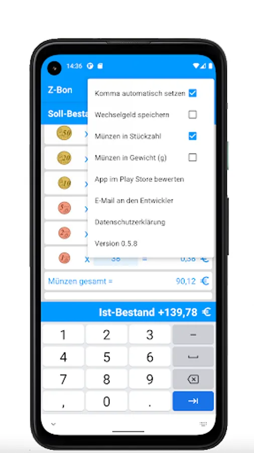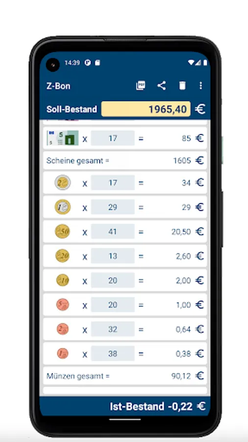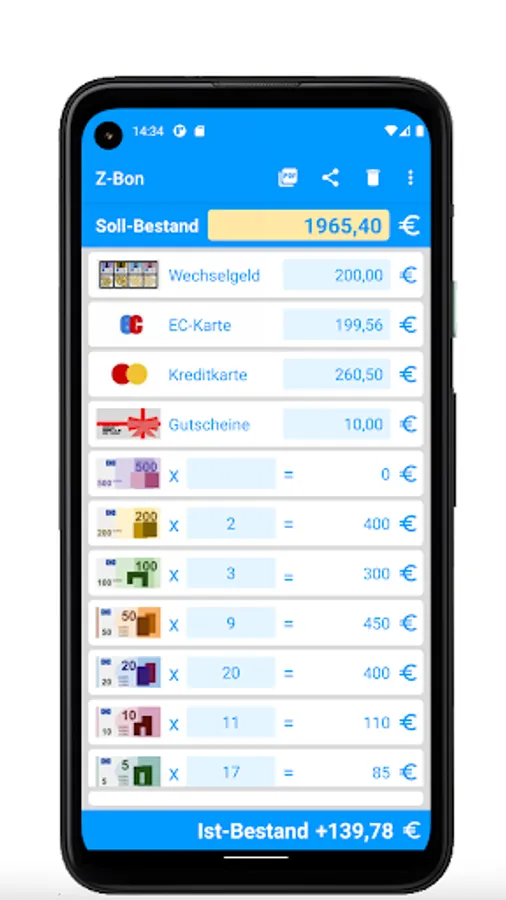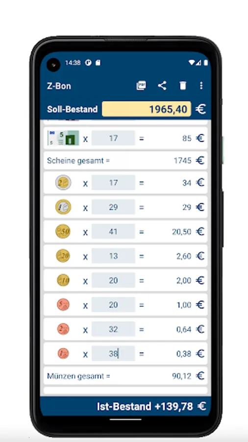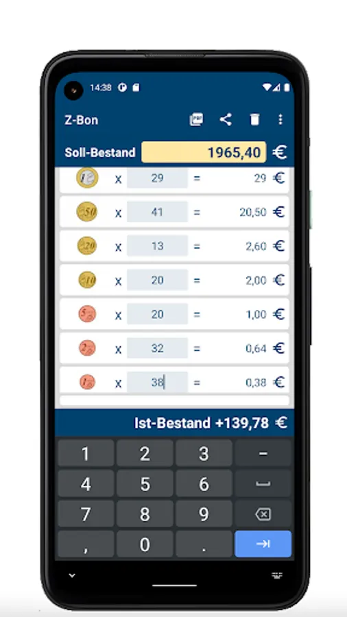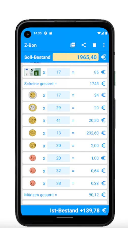 "Z-Bon" is the best app to count your cash register quickly and easily.