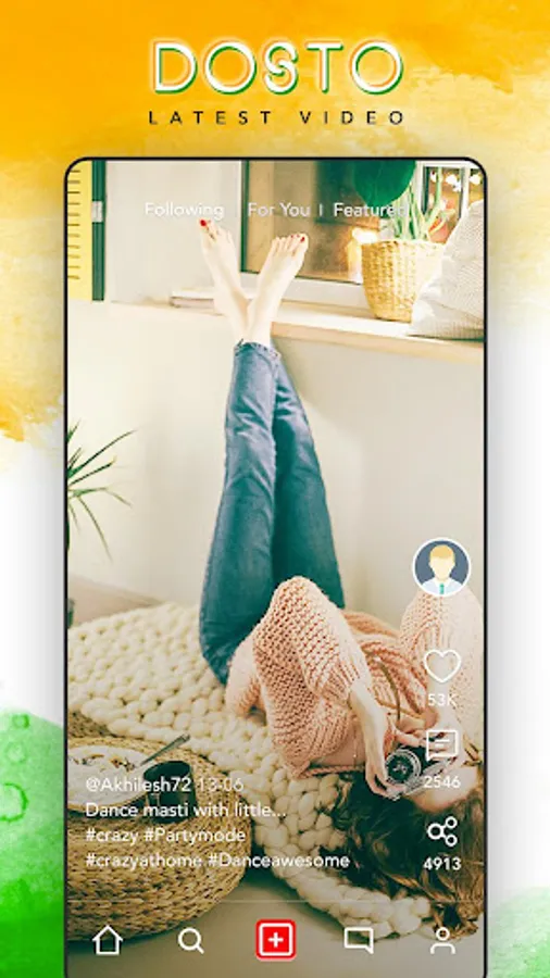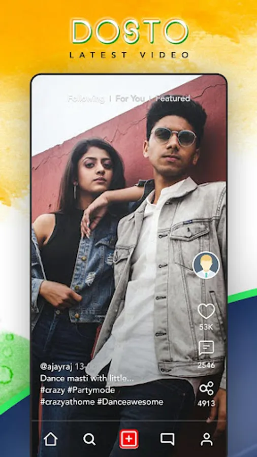 Dosto - Indian funny short video app is the newest short humorous video party app. It is created for Indians to share their humorous videos on the internet. Users of this indian video app can create and share the amusing funny short video using the app’s simple and intuitive UI. Enjoy unique comedic entertainment such as stand-up comedy videos and short hilarious videos using this funny short video indian app.