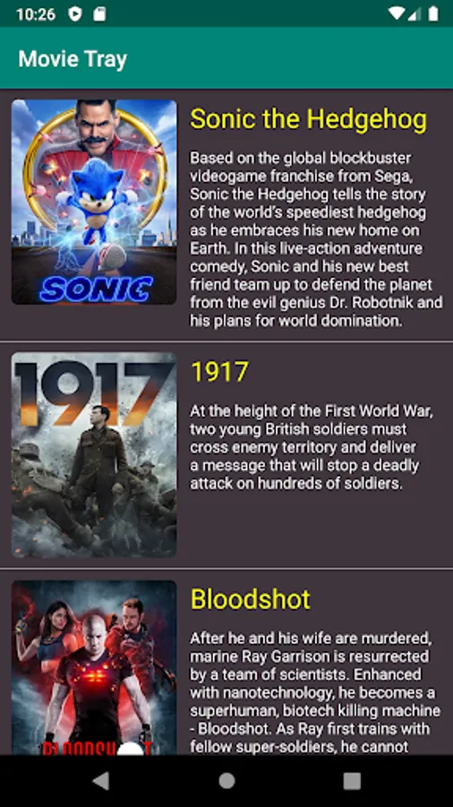This simple app allows a user to scroll through newly released movies. User can see the trailer, rating and release date of the movies in the list.