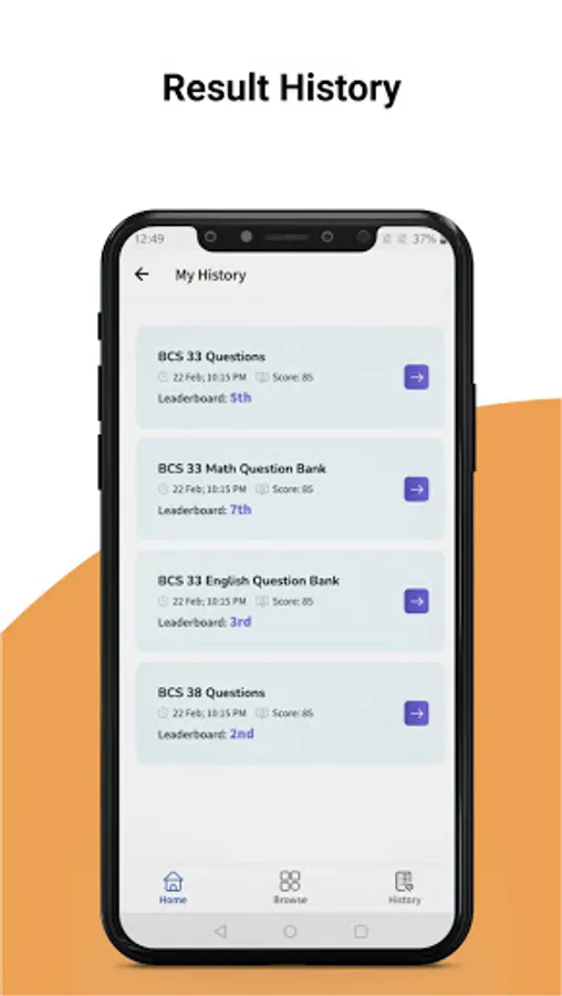 এই বিভাগে আপনি যত মডেল টেস্ট দিবেন তার সব History জমা থাকবে। পরবর্তিতে যে কোন সময়ে আপনার দেওয়া যত মডেল টেস্ট আছে তার পুরো প্রশ্নপত্র দেখতে পারবেন এবং যদি পুরানো কোন মডেল টেস্ট আবারো দিতে চান তাও পারবেন।