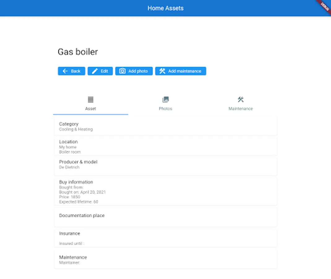 With the Home Assets app you will be able to register all your home things, categorise them and keep photos of them. You can keep dates when assets were bought, from where and what expected their lifetime. Assets are categorised by home and room they are kept. Even you set information where the asset's documentation is located.