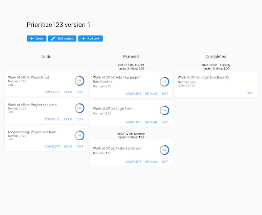 PRIORITIZE123 is designed to reduce complexity and make you more effective. You can choose to keep it simple with clear tasks or create areas and projects for more complex prioritization. Our user-friendly interface makes it easy to get started and stay on track.