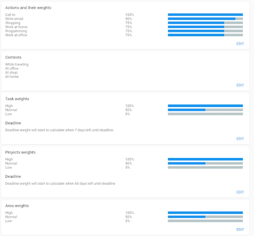 With our advanced algorithm, you can easily prioritize your tasks based on their importance, urgency, and deadlines. You can also group your tasks into projects and projects into areas, and our system will automatically calculate any dependencies so that single tasks don't become a bottleneck for entire projects or areas.