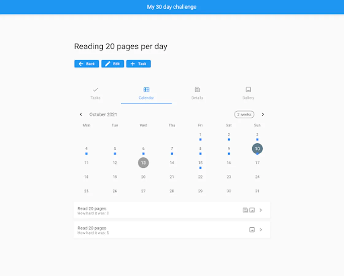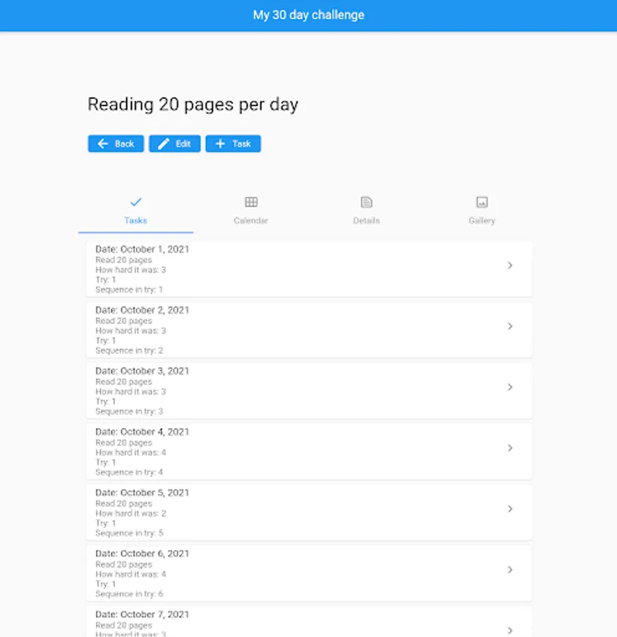 When you do tasks constantly and repetitively, you become better at it. This tool will therefore allow you to track the progress of your challenge. You see your completed tasks, and keep history of your achievements. Leave notes to