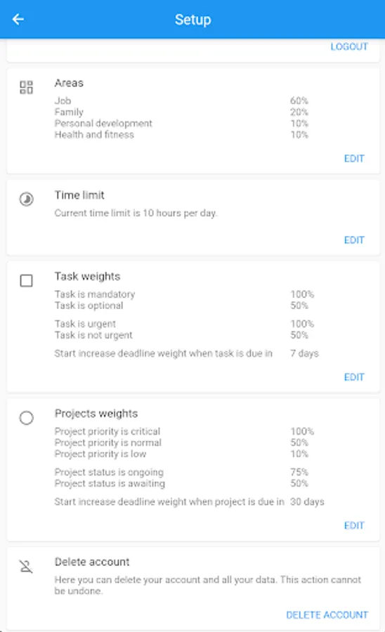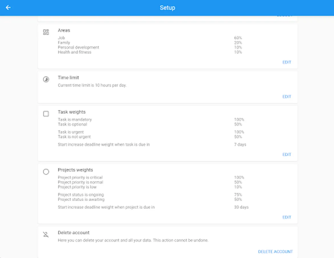 The power of Time Sage lies in its intuitive organization system. You can define various areas of your life, such as your job, family, personal growth, and more. Assign a certain number of hours or a percentage of your time to each area, and the app will take care of creating a balanced schedule for you.