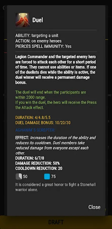 This app is not created, sponsored or endorsed by Valve Corporation. This app is not an official app or connected to the game's developer or publisher. All of the in-game imagery, hero icons, hero names, launcher icon and Dota name are copyright and/or registered trademarks of Valve Corporation, and usage for this app falls under fair use guidelines. This app is intended purely for the love of the game and aid further skill development and exploration of the game.