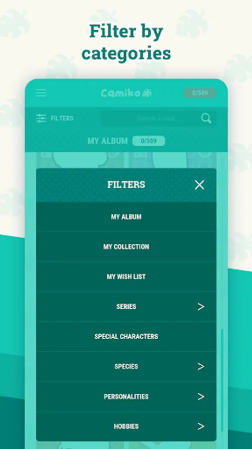 - Filter amiibo cards by many categories (series, species, personalities, hobbies...)
