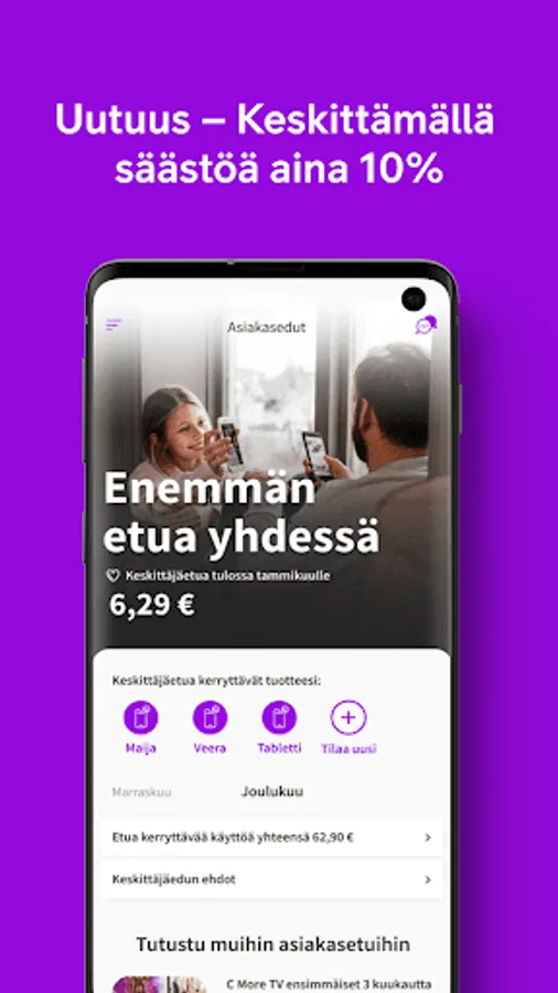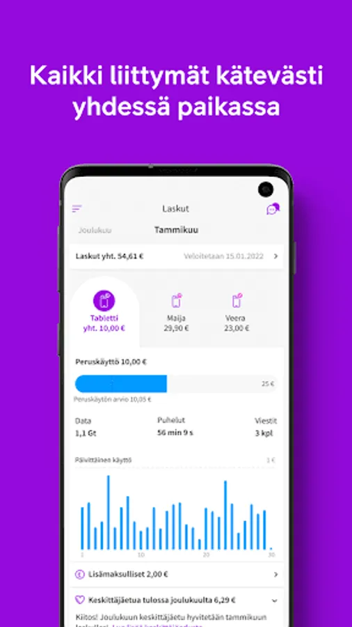 NEW! We reward our customers for centralizing subscriptions to Telia Dot. In the future, 10% of the total amount of your bill's basic usage will always be credited to your next bill. You are entitled to the benefit when you have at least two Telia Dot subscriptions whose basic usage billing is more than €5/month/subscription.