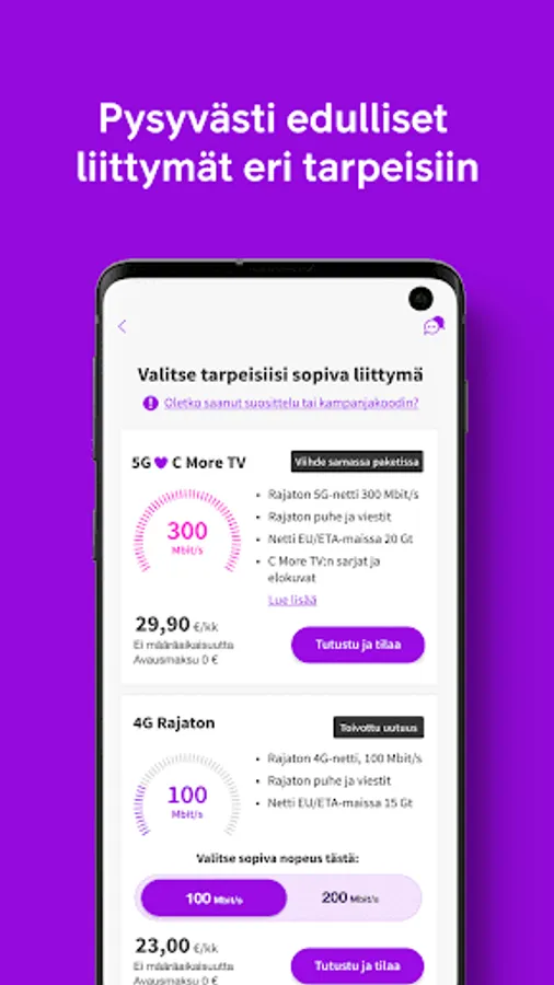 Start by downloading the Telia Dot application and select the appropriate subscriptions