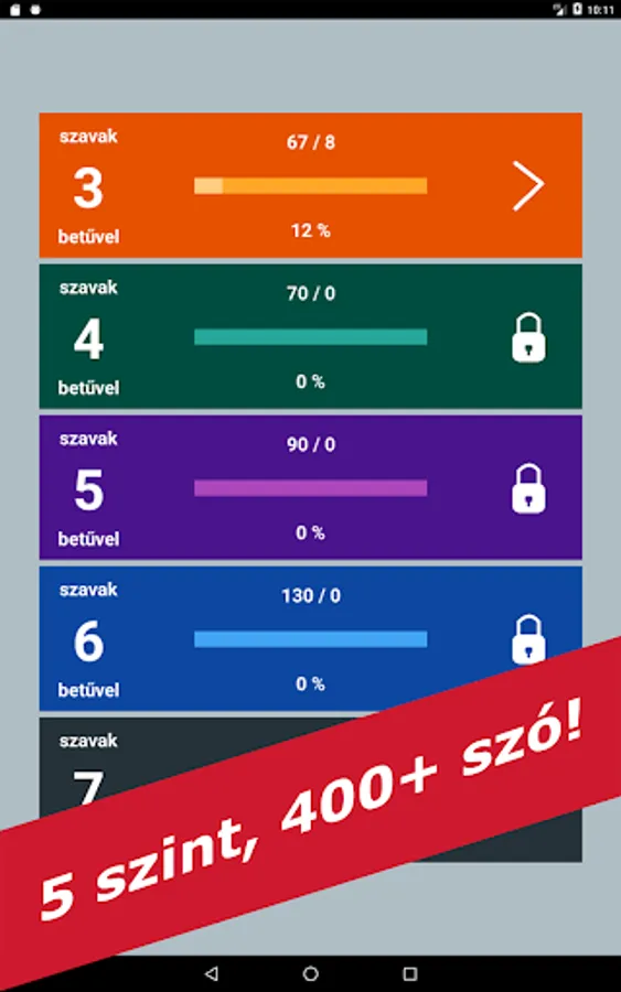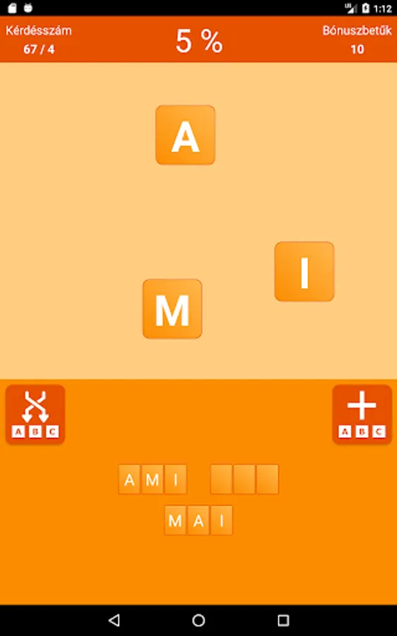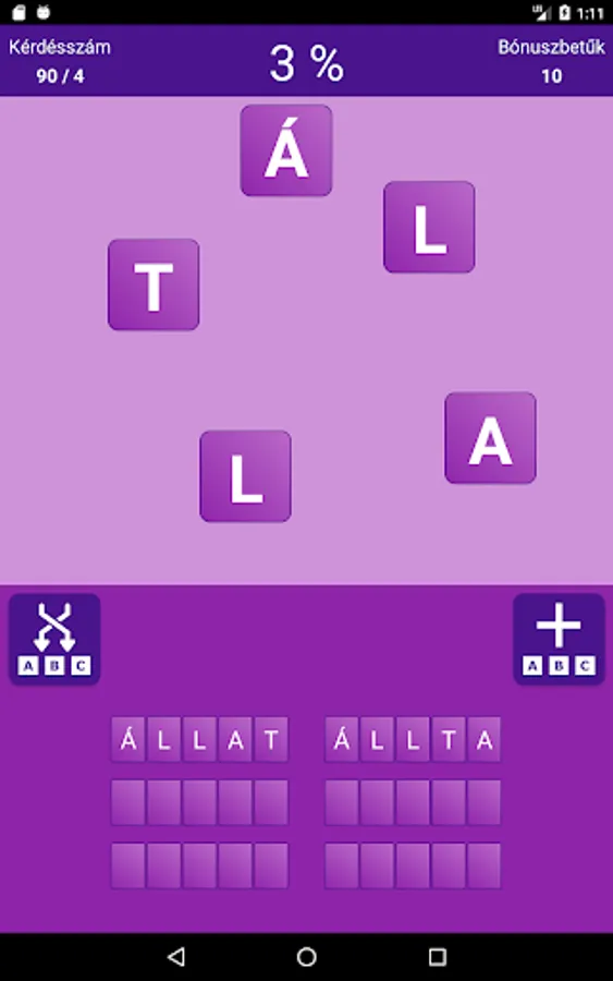 In the game, depending on the difficulty level, you get 3-7 letters, the task is to create new words using all the letters at the same time. At least two, but up to 6 words per round can be displayed in the same characters.