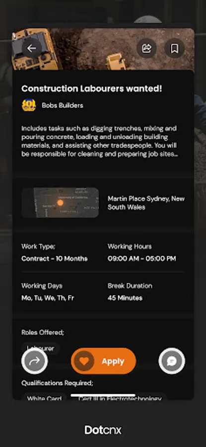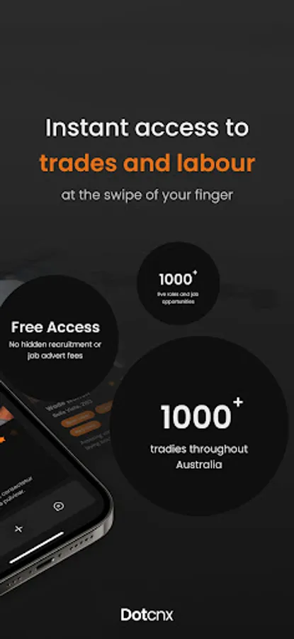 Dotcnx is a recruitment app that allows job providers and job seekers to connect for the purposes of employment. Employer benefits - Instant access to thousands of local trades and labourers for free. ability to post jobs for specific trades. swipe and list function to connect or decline candidates. algorithm built in to find the most suitable candidates. shortlist feature to create a pool of candidates that you're interested in. Instant messaging access to candidates that have applied for your job. ability to make multiple job post and switch between pools of candidates. rating feature to give employees a review on how well they done the job. ability to review candidates rating from previous employers.