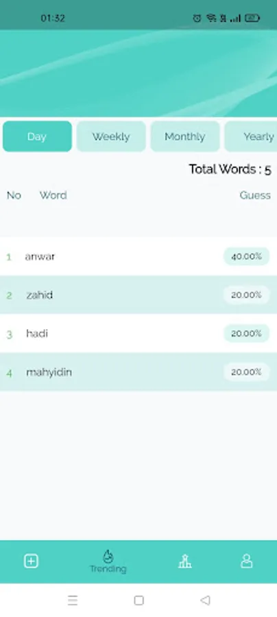 A fairly simple game where you have to guess the word that will be viral or trending for today. Each guess will be awarded points according to the ranking of the trending words of the day. Points will be awarded as follows :-