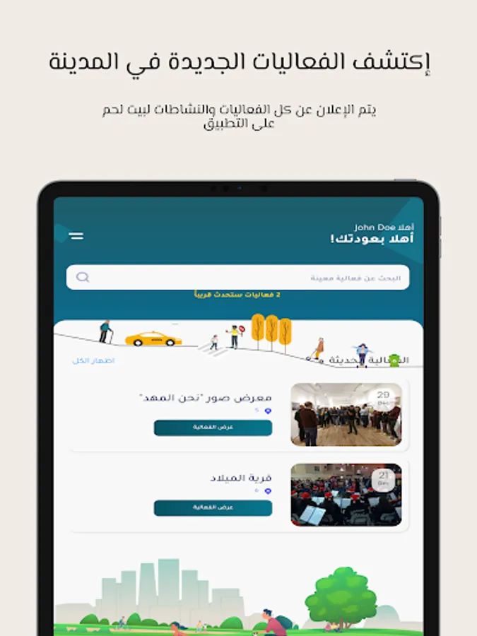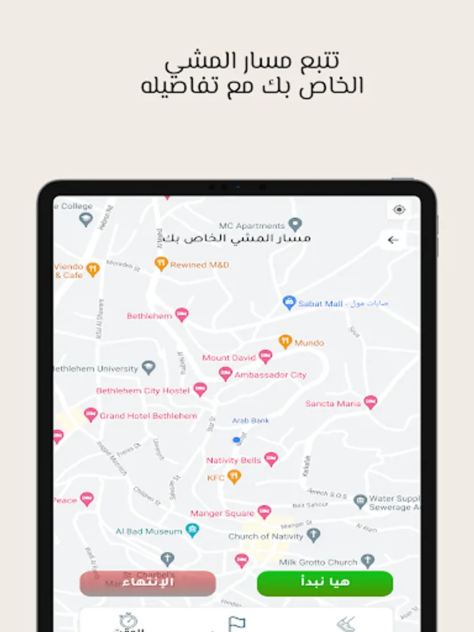 The Walk Bethlehem application is an educational application to encourage walking in the city and spread all its activities and events to users, as it records every path in which you walk in the city and saves it on the device, and it also displays a list of all the important events and activities in the city.