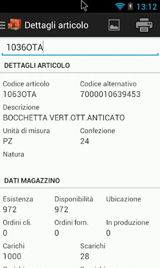 & Bull; Check availability, orders customer / supplier, the loads, discharges, location and the image of the selected article.