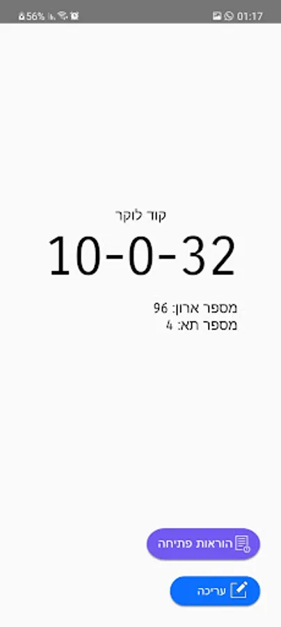 A simple application that contains the option to save the locker code, the cell number and the cabinet number where the locker is located. The app also contains an explanation for opening the locker.